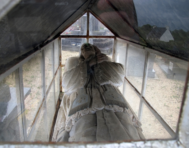 Vue de détail du gisant à travers la verrièreImmatriculation