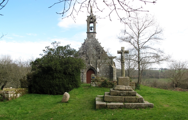 Tonquédec, Kerrivoalan : chapelle Notre-Dame et sa croix, vue générale ouestImmatriculation