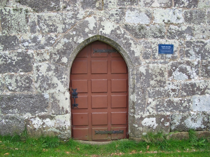 Tonquédec, Saint-Gildas : chapelle, élévation nord, porte en arc briséImmatriculation