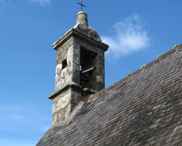 Tonquédec, Saint-Gildas : chapelle, mur-pignon ouest, clocher, vue de détailImmatriculation