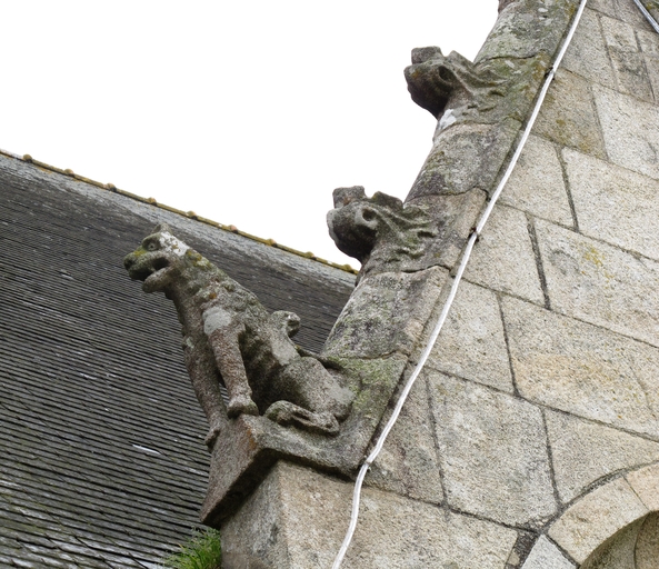 Tonquédec, le bourg : église paroissiale Saint-Pierre, porche sud, vue de détailImmatriculation