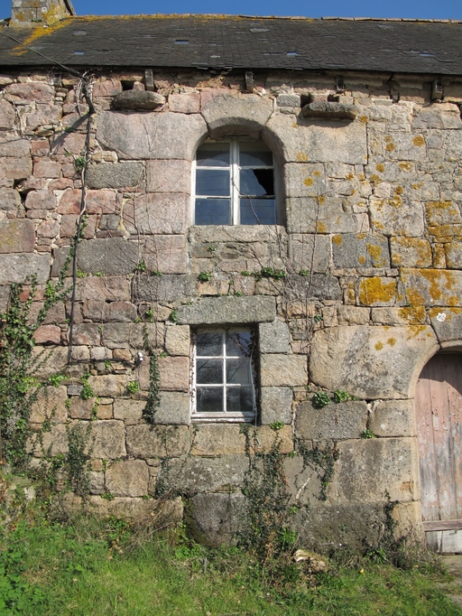 Tonquédec, Kerboriou : manoir, élévation antérieure orientée vers le sud-sud-ouest, fenêtre du rez-de-chaussée et porte haute, vue de détailImmatriculation