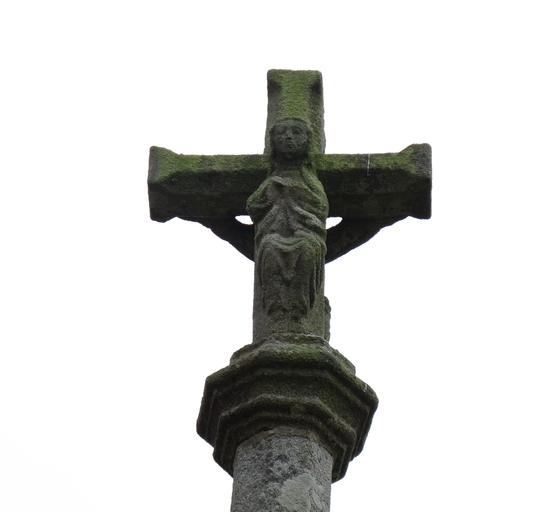 Tonquédec, le bourg, place de l'église : croix monumentale, Vierge, vue de détailImmatriculation