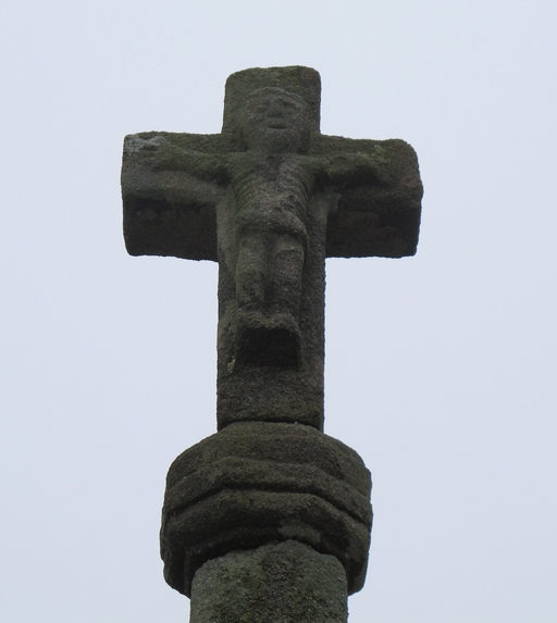 Tonquédec, Hent Meur : croix de chemin, Christ en croix, vue de détailImmatriculation