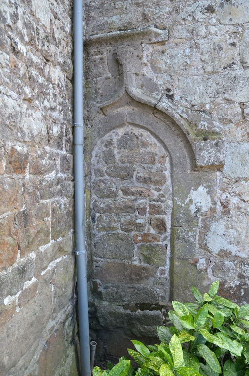 Prat, le bourg : église paroissiale Saint-Pierre, mur nord, porte muréeImmatriculation