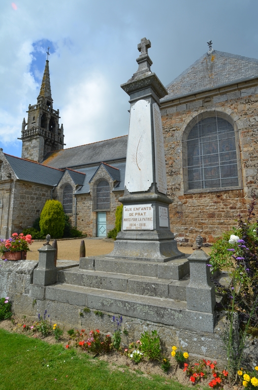 Prat, le bourg, place de l'Église : monument aux morts, vue générale sudImmatriculation