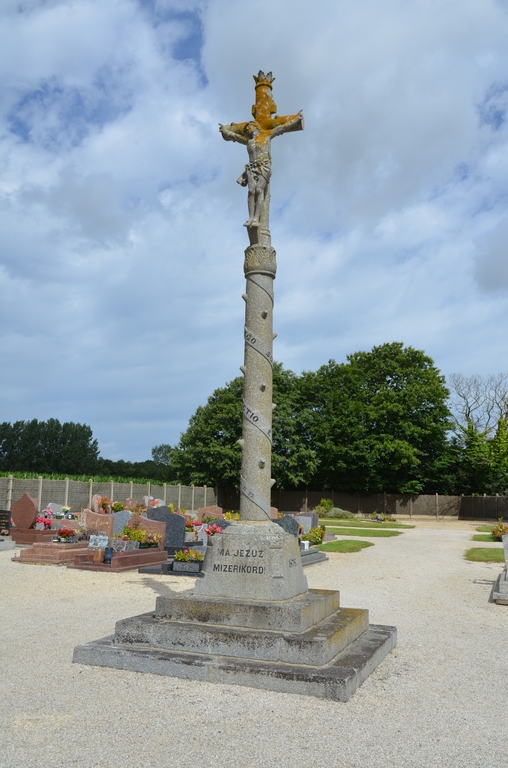 Prat, le bourg, route de Rugwazhvin : cimetière, croix de cimetière datée 1876, vue généraleImmatriculation