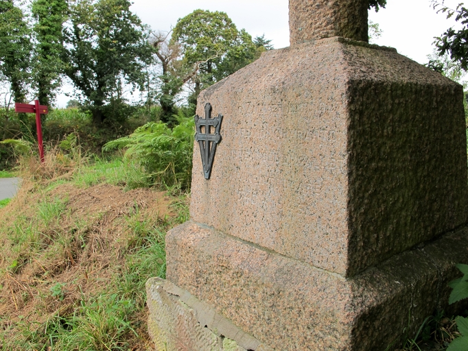 Prat, Convenant Caignard : croix de chemin, socle, vue de détailImmatriculation