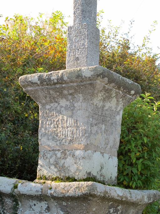 Prat, Lescoben : croix de chemin, socle, vue de détailImmatriculation