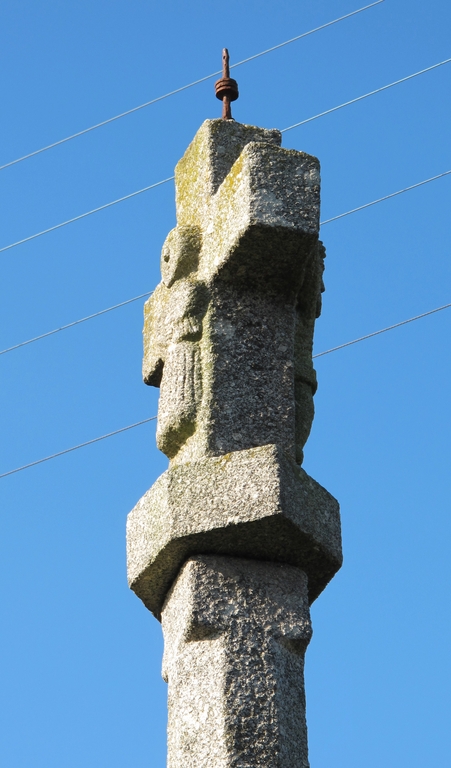 Prat, Lescoben : croix de chemin, Vierge à l'enfant, vue de détailImmatriculation