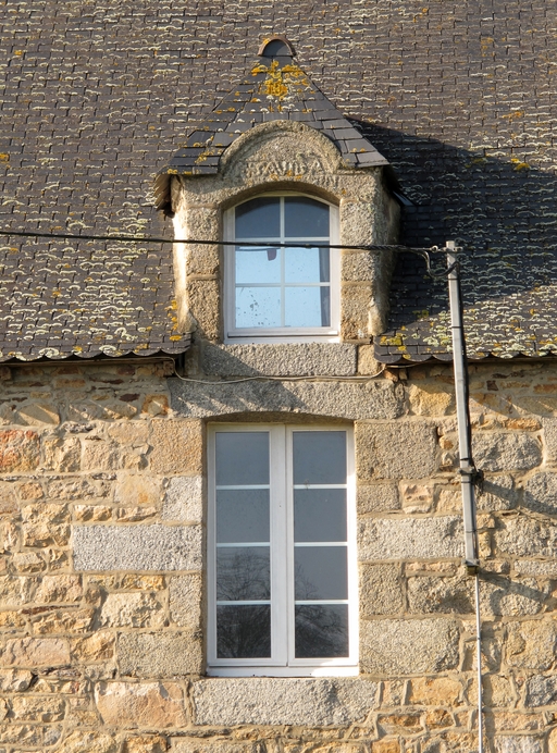 Prat, Kermerrien : manoir puis ferme, élévation antérieure orientée vers l'est, vue de détailImmatriculation