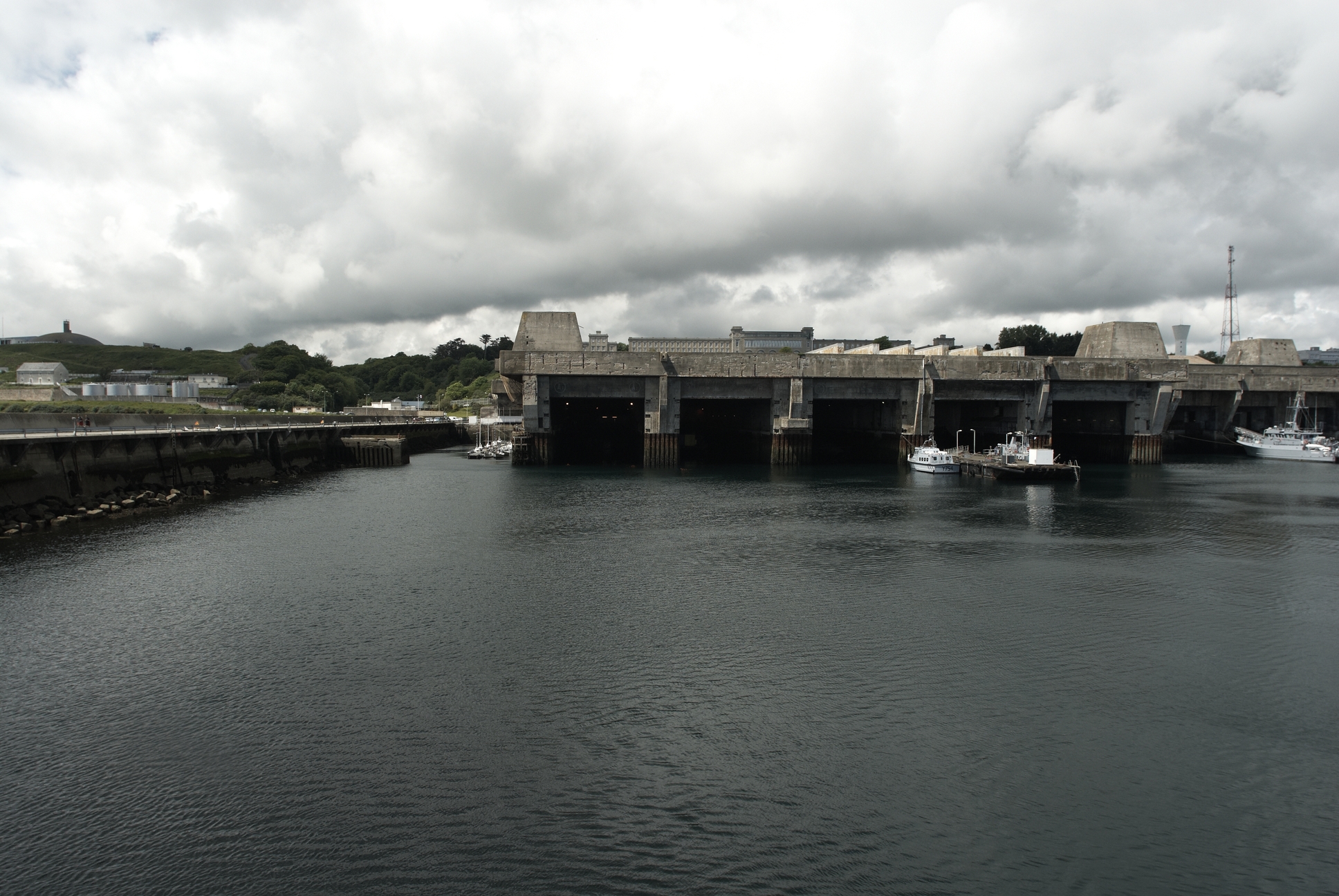 Vue de la base de sous-marins depuis l´intérieur de l'enceinte de l´arsenal : front sud-estImmatriculation