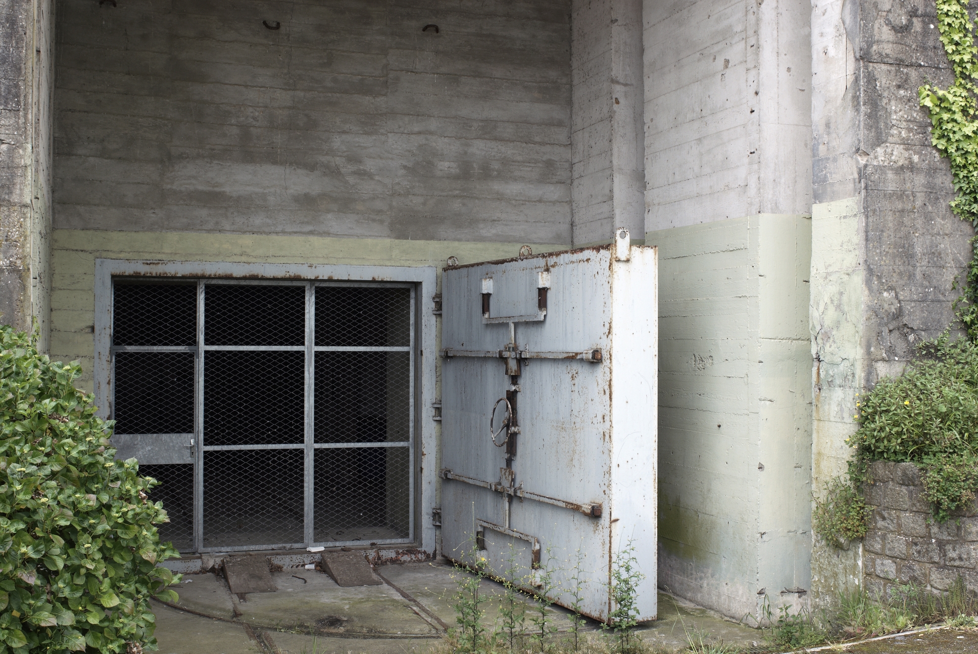 Vue du bunker-usine : détail de la porte blindéeImmatriculation