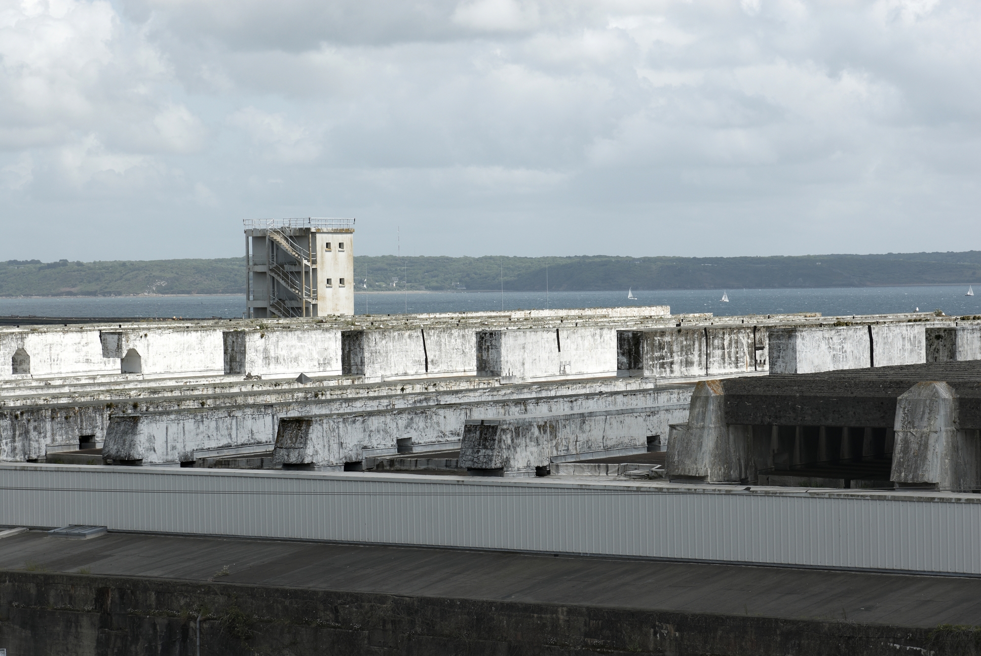 Vue de la base de sous-marins depuis la route de la Corniche : chambres d´explosion du toitImmatriculation