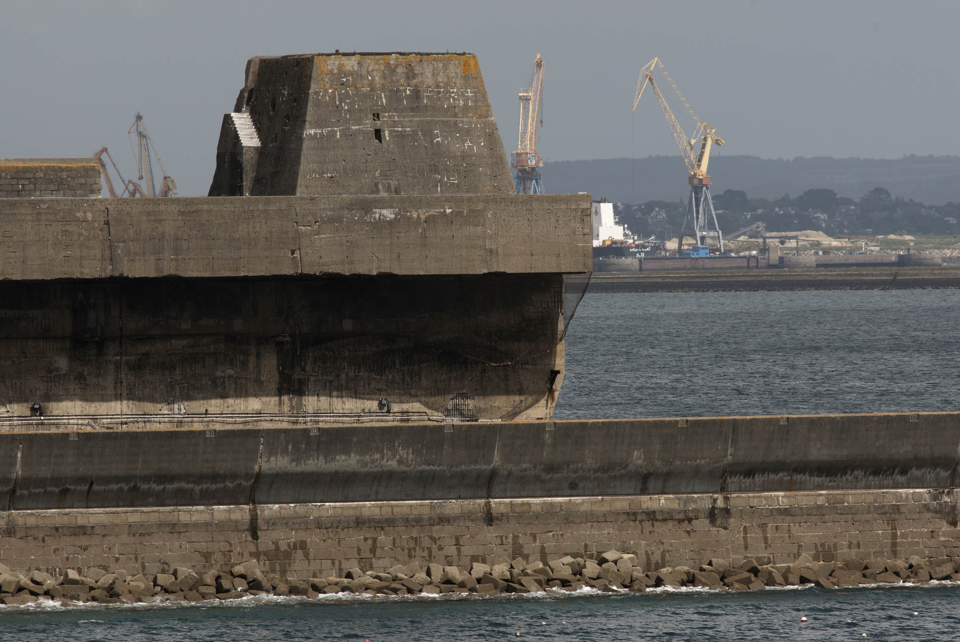 Vue de la base de sous-marins : détail du front sud-ouest, cuve de défense pour canons antiaériensImmatriculation