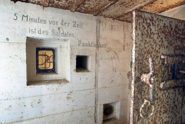 Vue générale depuis l'entrée : peinture murale et maxime "5 Minuten vor der Zeit, ist des Soldaten, Pünktlichkeit !" ("5 minutes avant l’heure, c’est la ponctualité du soldat !"), photographie réalisée le 11 mai 2009Immatriculation
