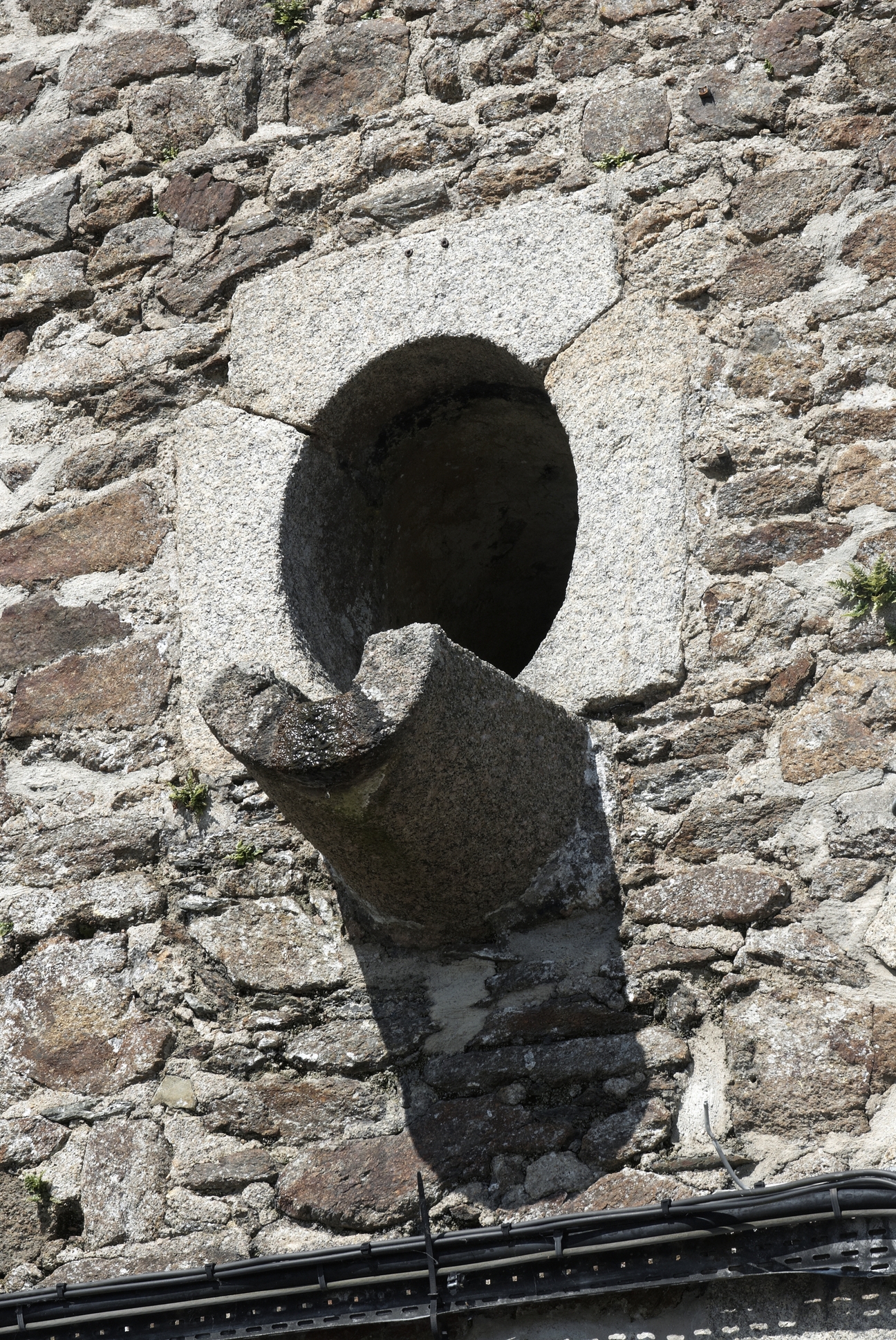Vue de détail de l'une des gargouilles du casernementImmatriculation