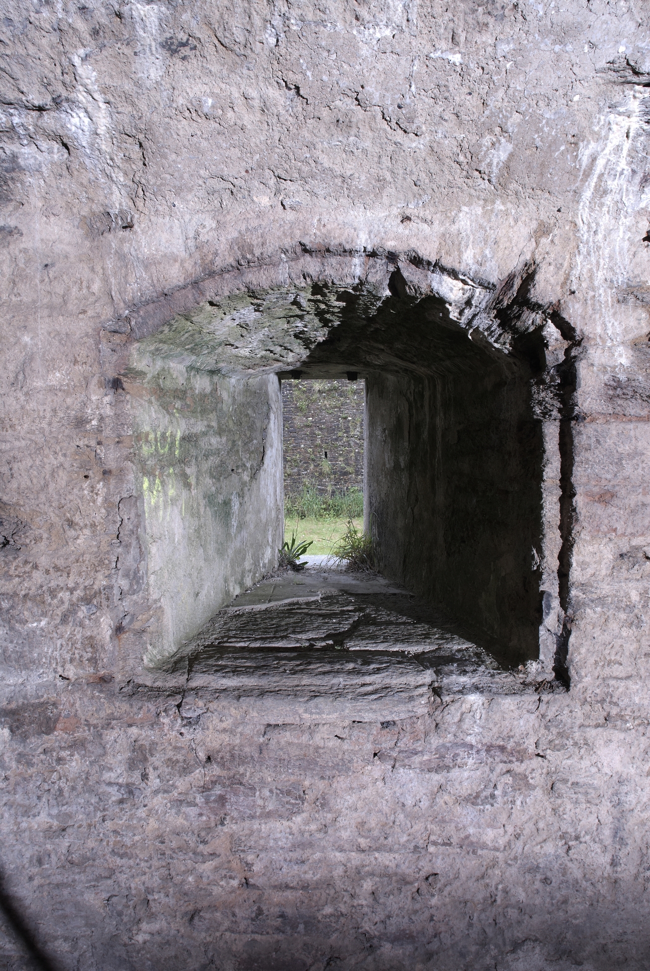 Brest : la redoute du Questel, Brest : la redoute du Questel, front de gorge sud, grande casemate inférieure dite grand souterrain, créneau de mousquetterie, photographie réalisée le 12 mai 2009Immatriculation