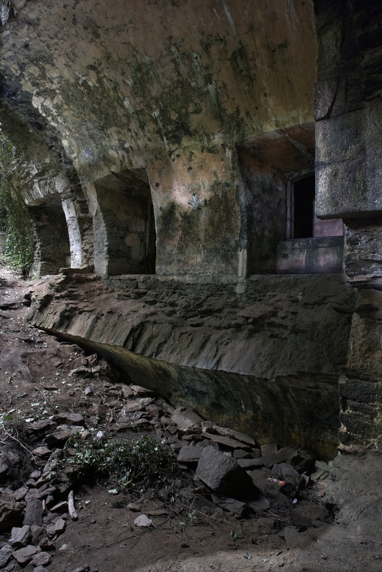 Brest : la redoute du Questel, la voûte du casernement de droite s´est effondrée lors des bombardements aériens de 1944, photographie réalisée le 12 mai 2009Immatriculation