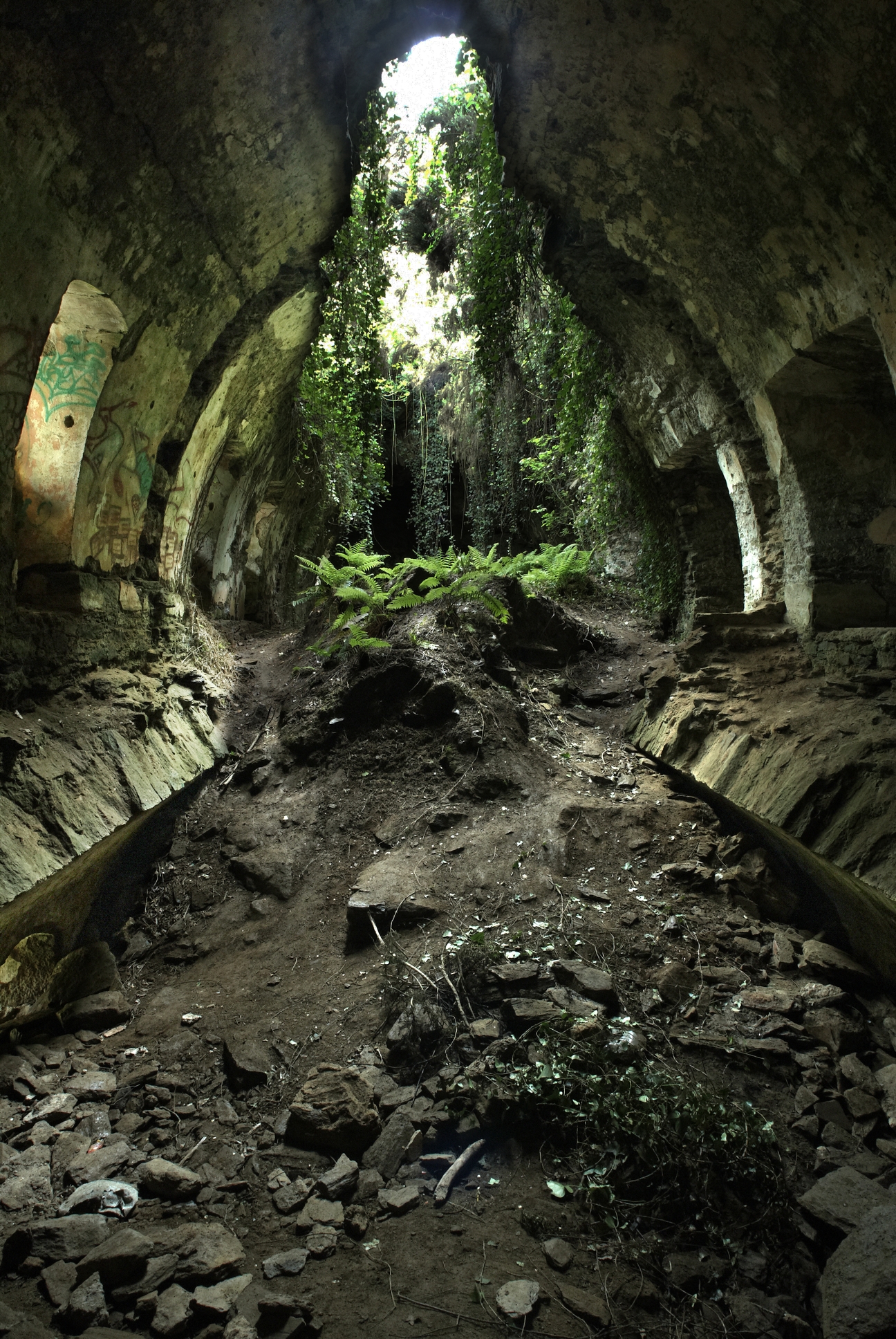 Brest : la redoute du Questel, la voûte du casernement de droite s´est effondrée lors des bombardements aériens de 1944, photographie réalisée le 12 mai 2009Immatriculation