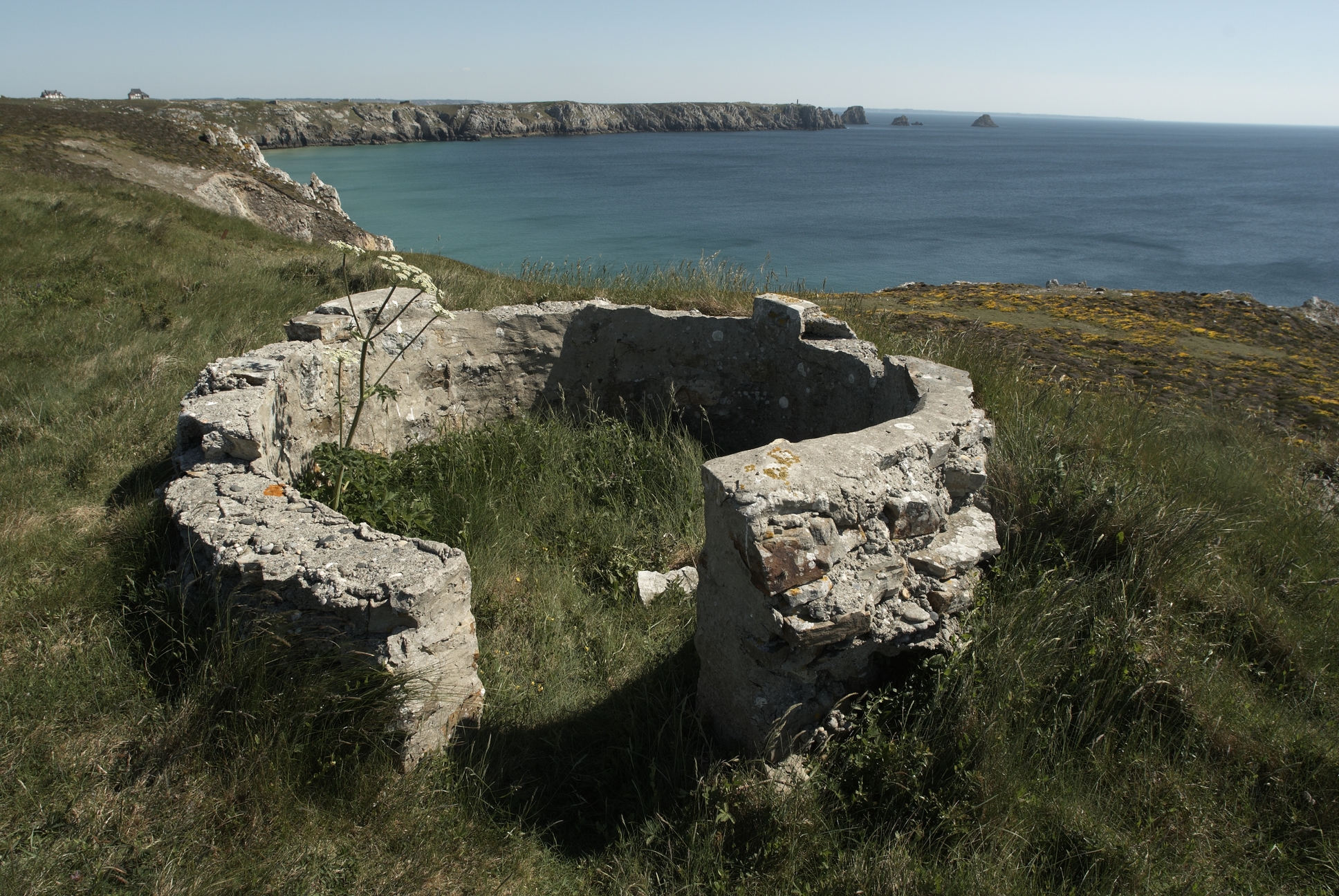 Batteries (4 canons G de 24 cm modèle 1876, 4 canons de 19 cm modèle 1875-1876, 4 canons G de 95 mm sur affûts G de côte), poste de projecteur (Cr 345), Pointe du Toulinguet (Camaret-sur-Mer),
