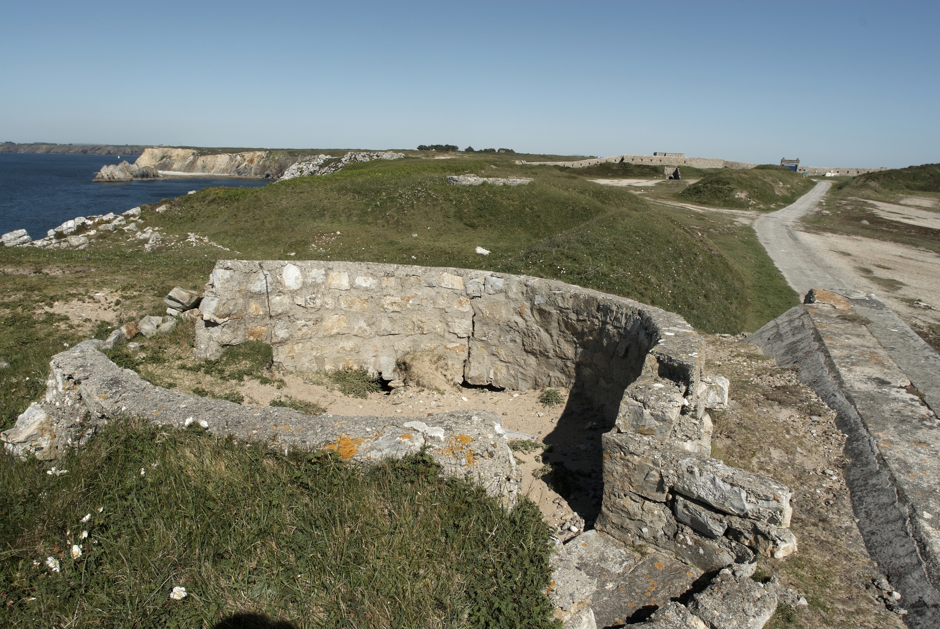 Batteries (4 canons G de 24 cm modèle 1876, 4 canons de 19 cm modèle 1875-1876, 4 canons G de 95 mm sur affûts G de côte), poste de projecteur (Cr 345), Pointe du Toulinguet (Camaret-sur-Mer),