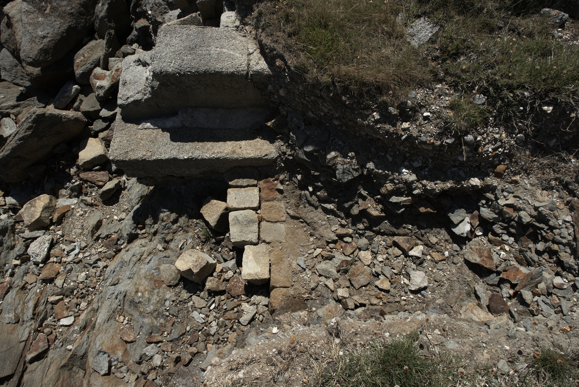 Plouzané : vue du fort du Mengant, détail de la batterie basse, extrémité ouest ruinée, niveau de sol primitifImmatriculation