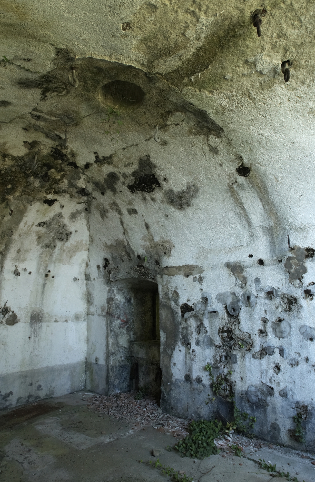 Plouzané : vue du fort du Mengant, usine électrique aménagée à flanc de falaise, intérieur, enduitImmatriculation