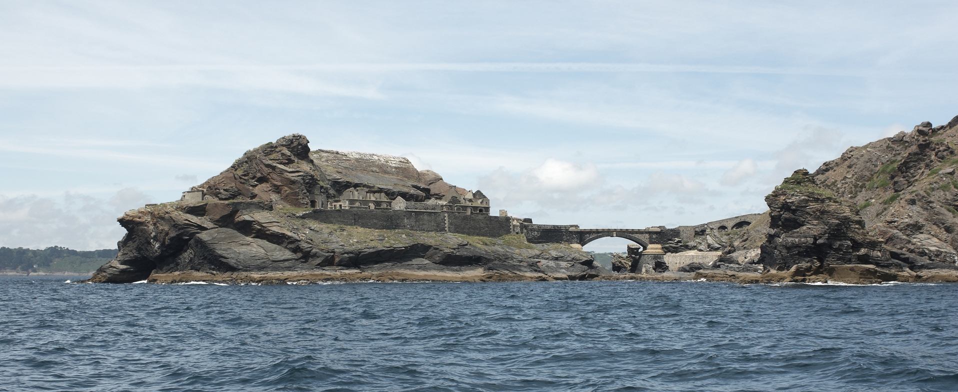 Roscanvel : vue de l'ensemble fortifié de l'îlot des Capucins depuis la mer, face sudImmatriculation