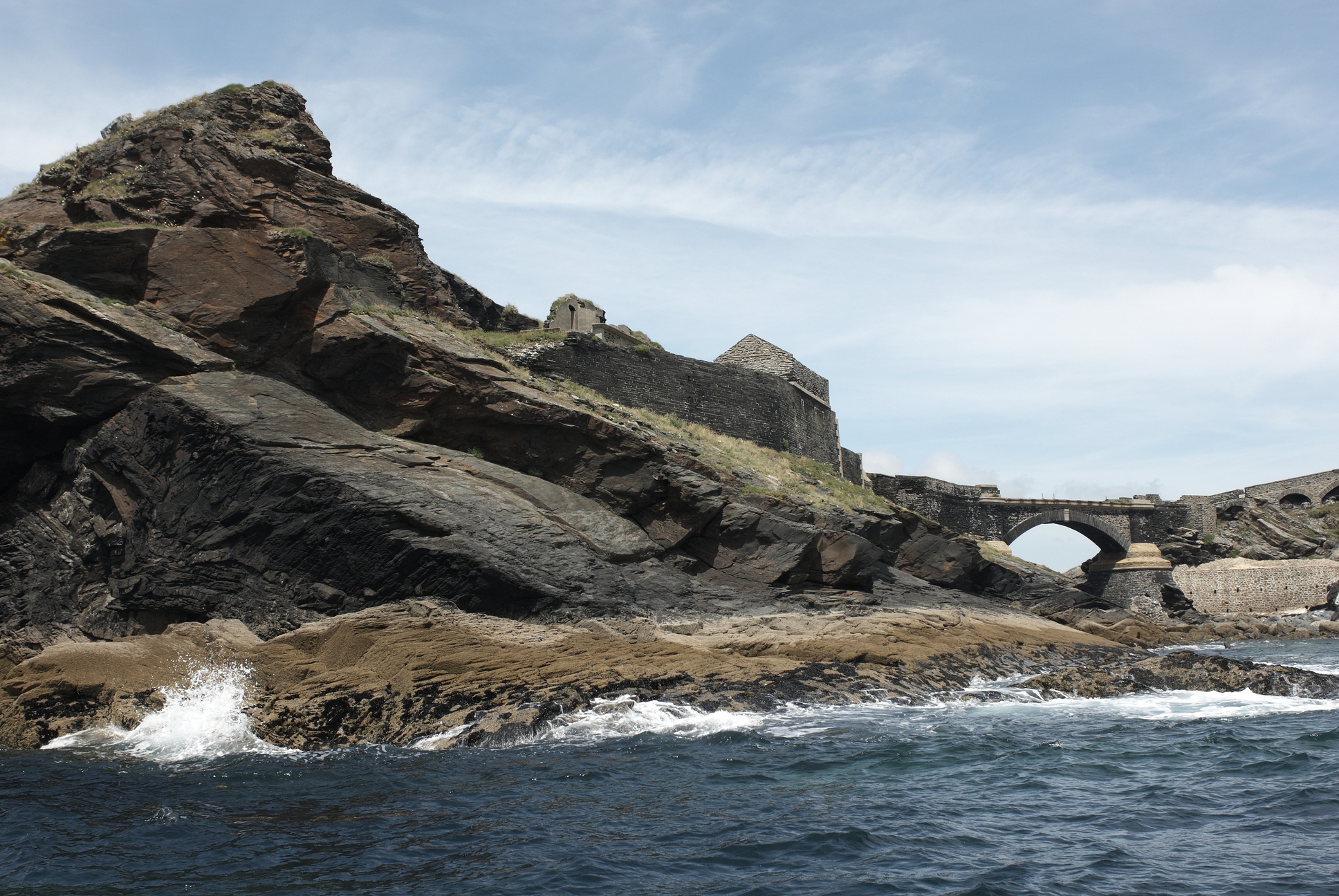 Roscanvel : vue de l'ensemble fortifié de l'îlot des Capucins depuis la mer, face ouestImmatriculation