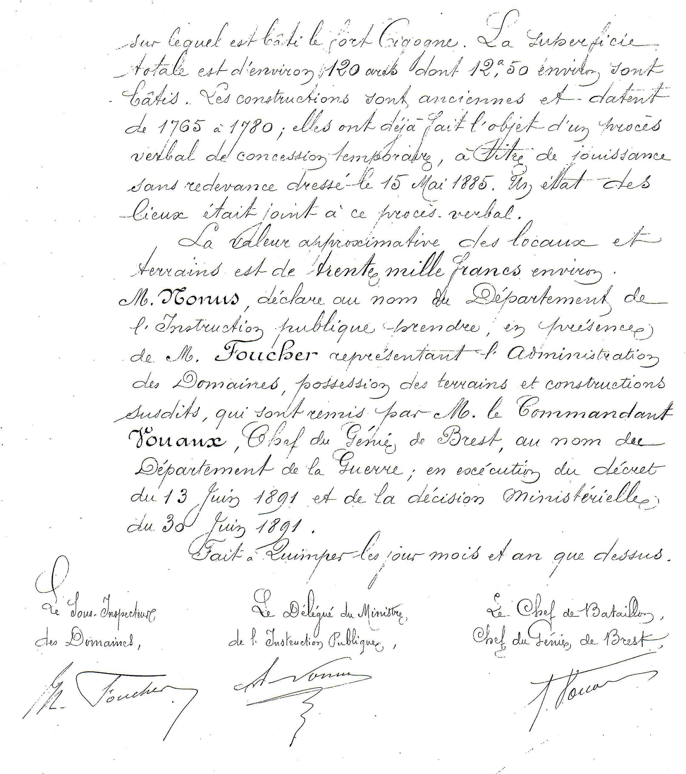 Procès verbal, remise du fort Cigogne du département de la guerre au département de l'instruction publique, 1891, (suite)Immatriculation