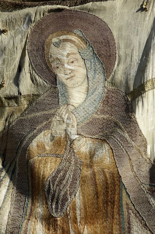 Ensemble de 2 bannières de procession : Christ en croix ; Immaculée Conception ; Sacré Coeur (Rimou),