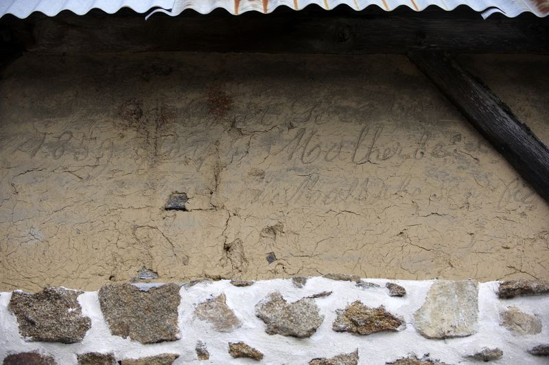 Inscription gravée dans la terre dans le villageImmatriculation