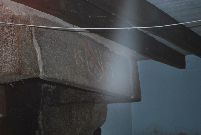 Cheminée ornée d'armoiries peintes et de la date 1591Immatriculation