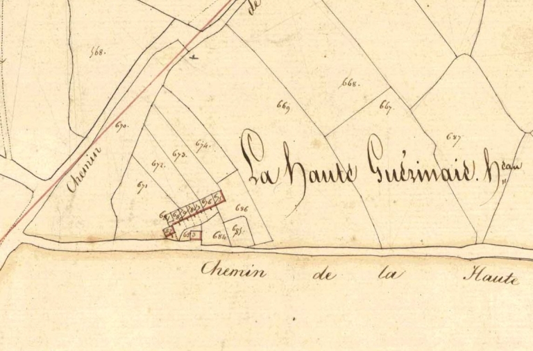 L'alignement de la Haute Guérinaye sur le cadastre de 1823Immatriculation