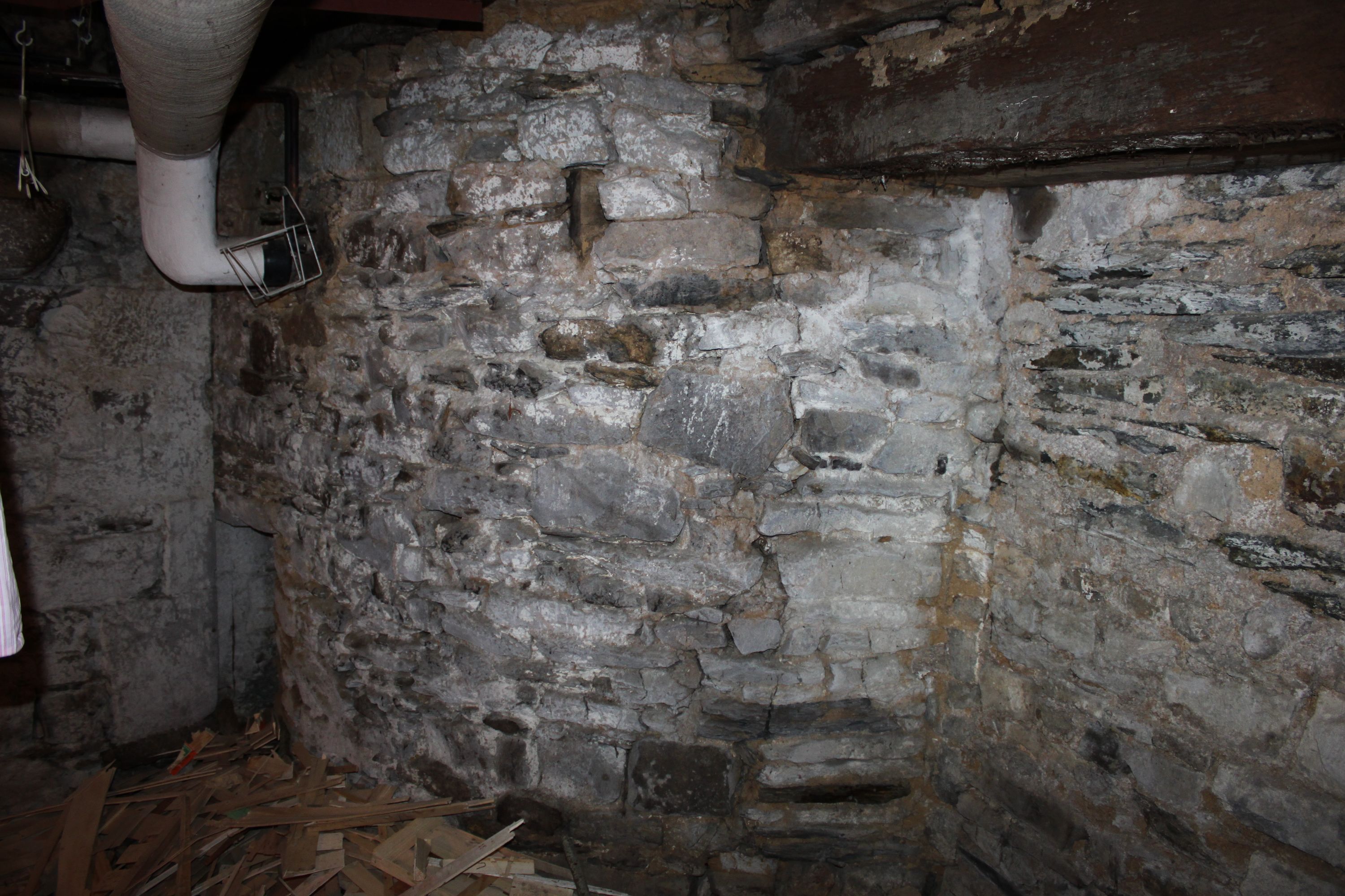 Cave, partie est du corps de logis, angle nord-ouest, mur convexeImmatriculation