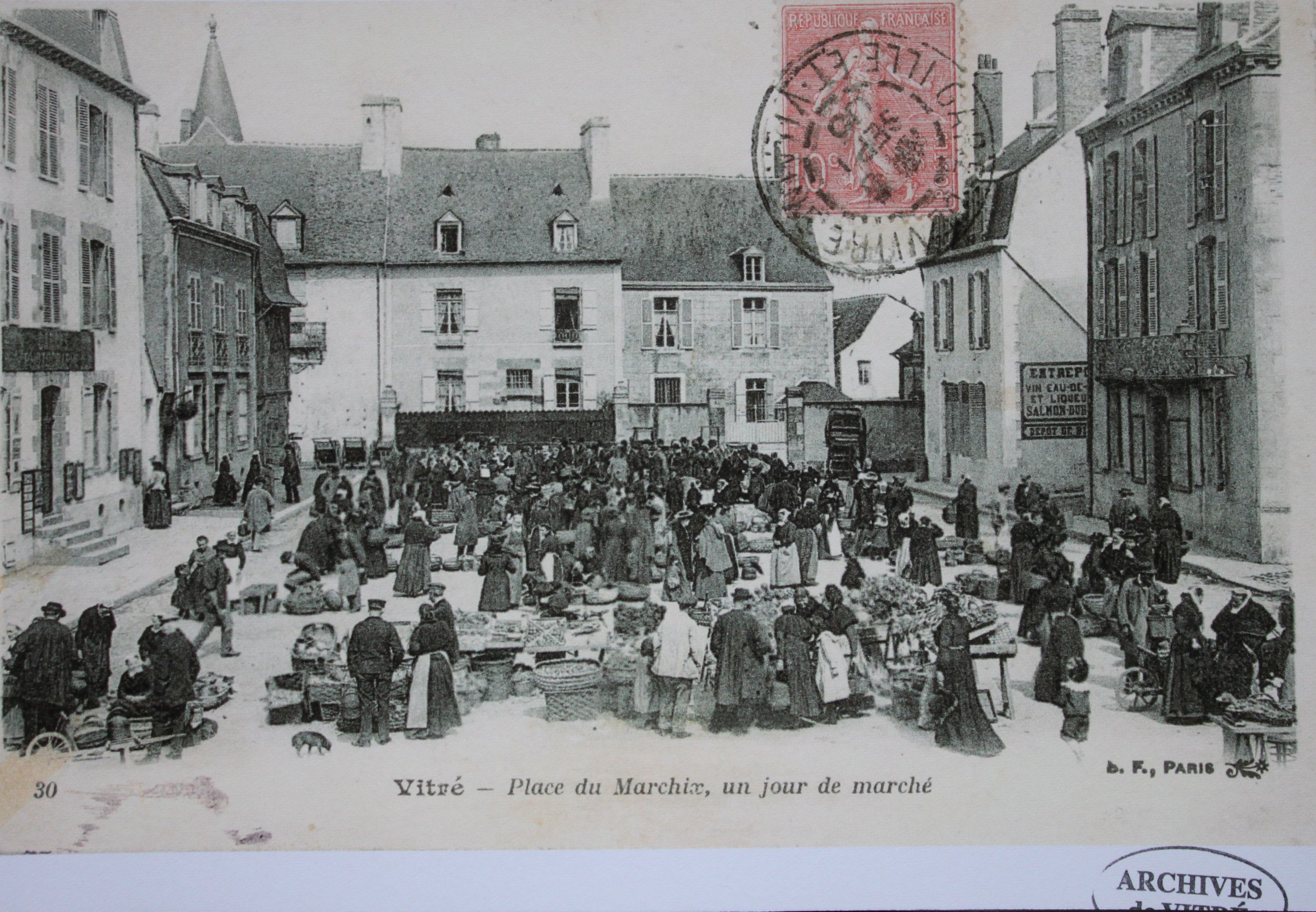 "Place du Marchix un jour de marché", carte postale ancienneImmatriculation