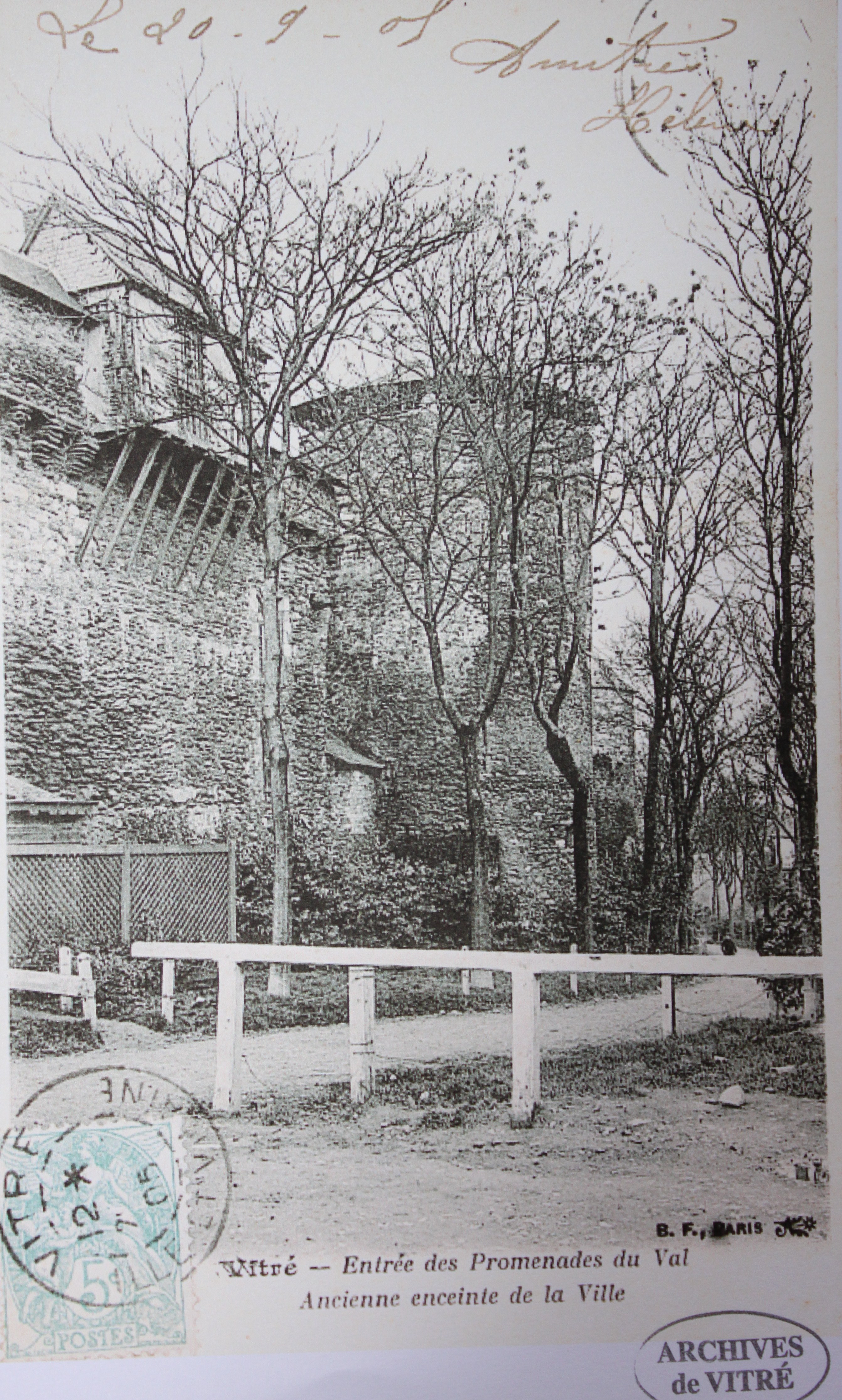 "Entrée des promenades du Val. Anciennes enceintes de la ville", (Vue sur la tour des Prisonniers), carte postale ancienneImmatriculation