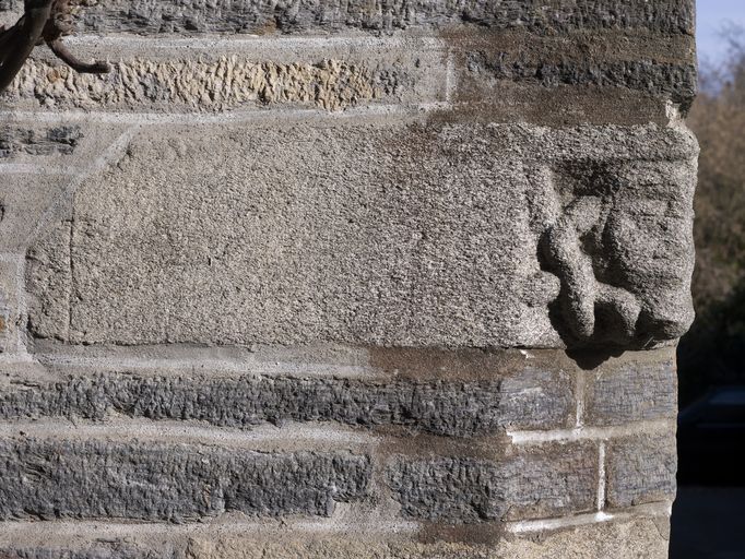 Maison, élévation sud, angle sud-est : culot sculpté (état en 2012)Immatriculation