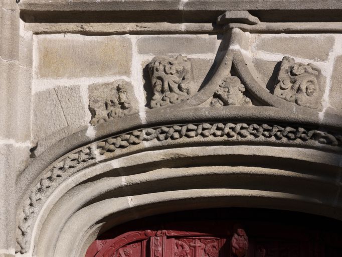 Église, élévation sud, porte gauche du portail : décor du linteau (état en 2012)Immatriculation