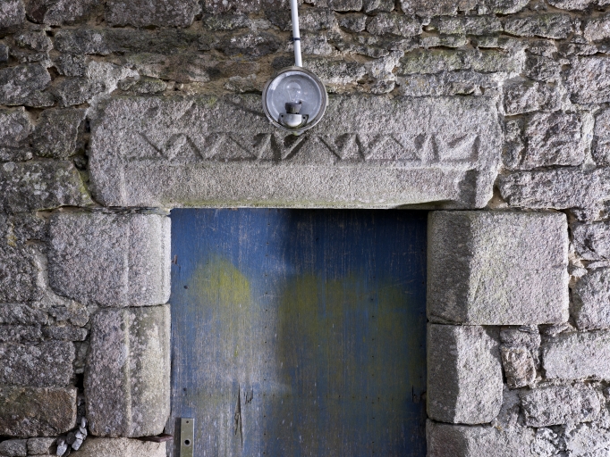 Elévation antérieure nord, détail du linteau de la porte de l'étableImmatriculation