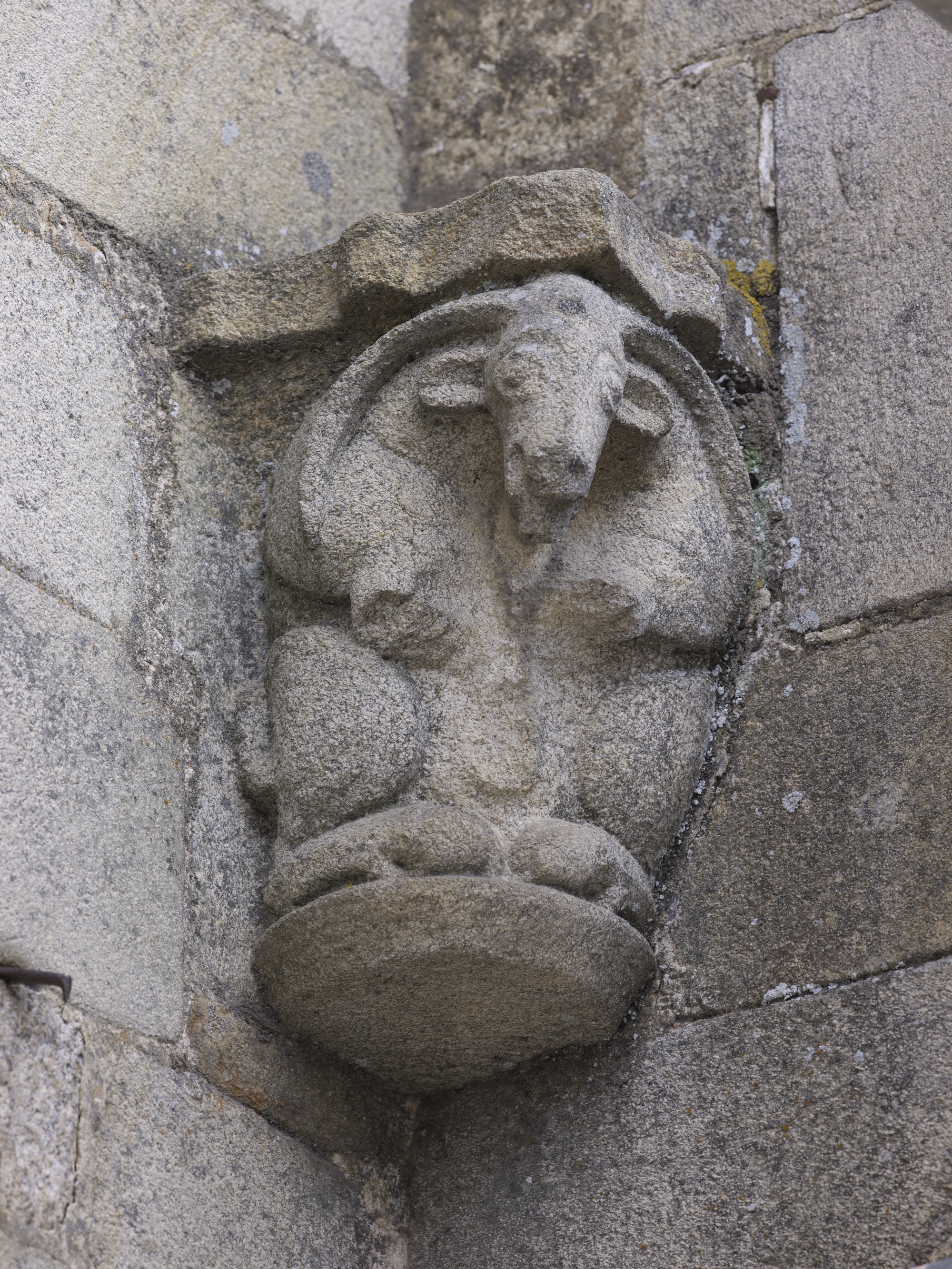 Nef, élévation sud, 1ère travée à partir de l'ouest : à gauche, un bouc représentant la luxure (état en 2012)Immatriculation