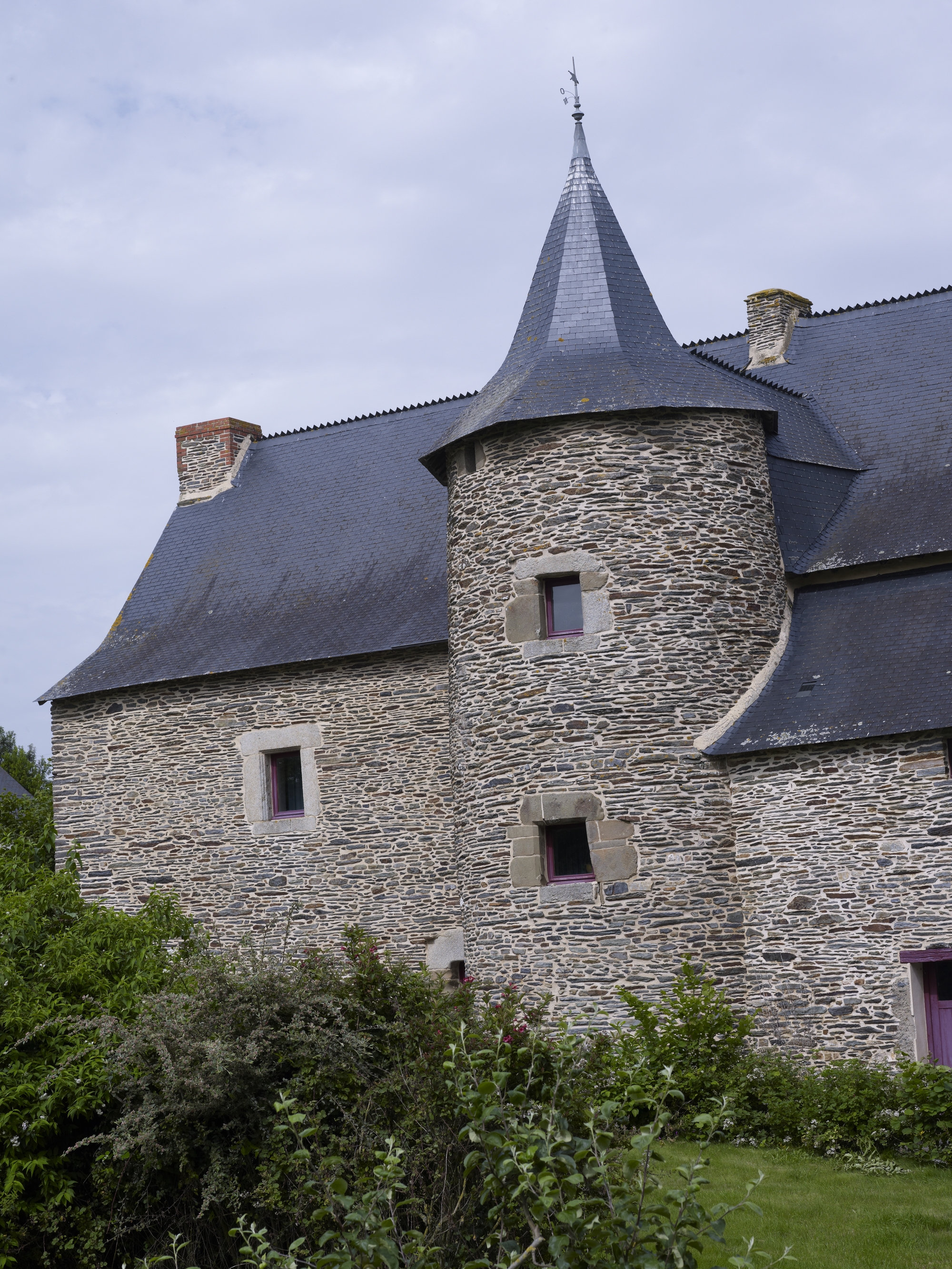 Manoir, logis, élévation ouest : la tour d'escalier (état en 2012)Immatriculation