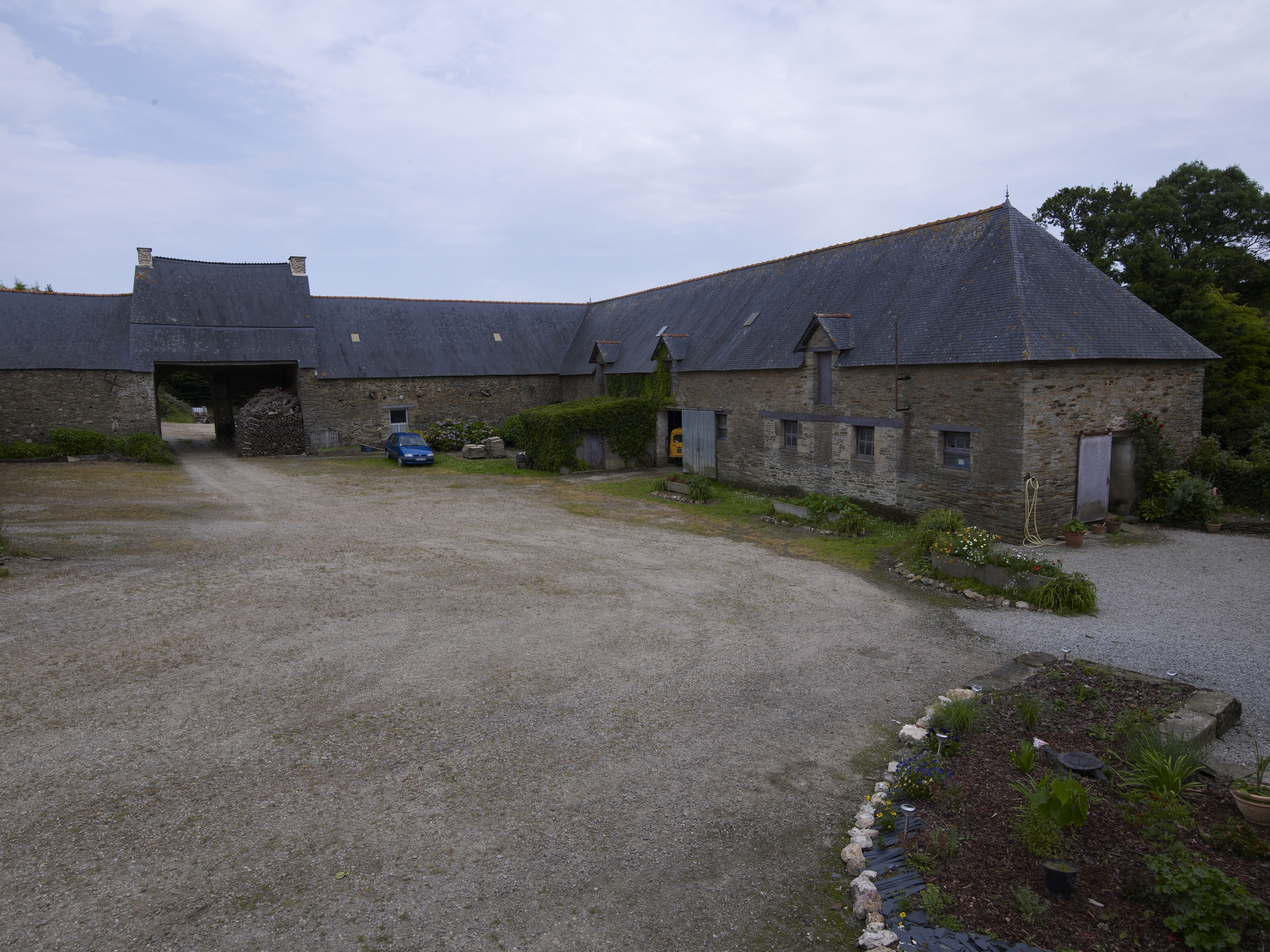 Manoir : la cour vue du logis vers le logis porche (état en 2012)Immatriculation