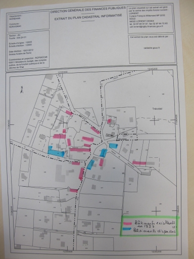 Localisation des bâtiments existants et disparus par rapport au plan de 1837. Extrait du plan cadastral 2010 (DGI), reproductionImmatriculation