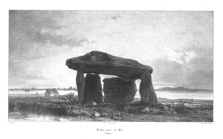 Belz. Dolmen. Lithographie de Thierry Frères, d´après gravure de Cicéri (Taylor et Nodier. Voyages Pittoresques dans l'ancienne France.Immatriculation