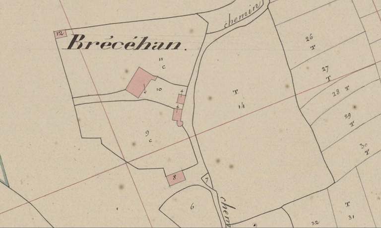 Le manoir de Brécéhan sur le plan cadastral de 1840, section E3 (A. D. Morbihan, 3 P 260/25)Immatriculation