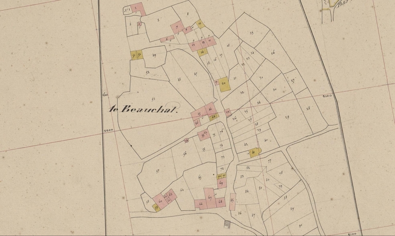 L'écart du Beauchat sur le cadastre de 1840 (A. D. Morbihan, 3 P 260/24)Immatriculation