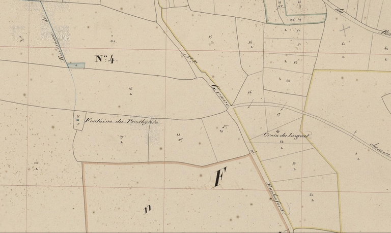 La fontaine du Vieux Presbytère sur le cadastre de 1840, section D, 2e feuille (A. D. Morbihan, 3 P 260/19)Immatriculation