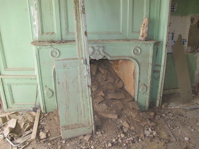 Deuxième étage, salle, mur nord, cheminée, détailImmatriculation